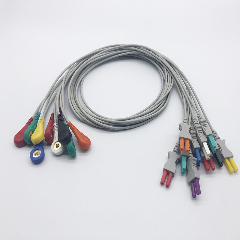 একটি ইসিজি (ইলেক্ট্রোকার্ডিওগ্রাম) ক্যাবল একটি বিশেষায়িত ক্যাবল যা মেডিকেল সেটিংসে ইলেক্ট্রোড সংযোগ করতে বা একটি ইসিজি মেশিন বা মনিটরের দিকে পরিচালিত করে।এটি ডায়াগনস্টিক বা মনিটরিং উদ্দেশ্যে হৃদয়ের বৈদ্যুতিক কার্যকলাপ ক্যাপচার এবং প্রেরণের জন্য একটি প্রয়োজনীয় উপাদান.