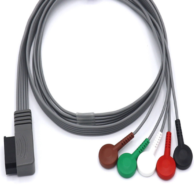 * পিএইচ হোল্টার রেকর্ডার ইসিজি ক্যাবল, 5 লিড, এএইচএ, স্ন্যাপ, সামঞ্জস্যপূর্ণ, 2.5 মিটার