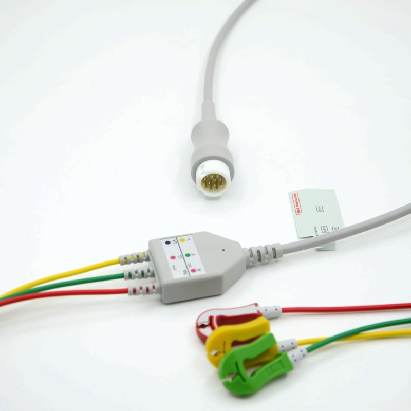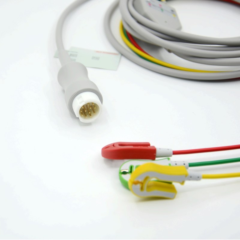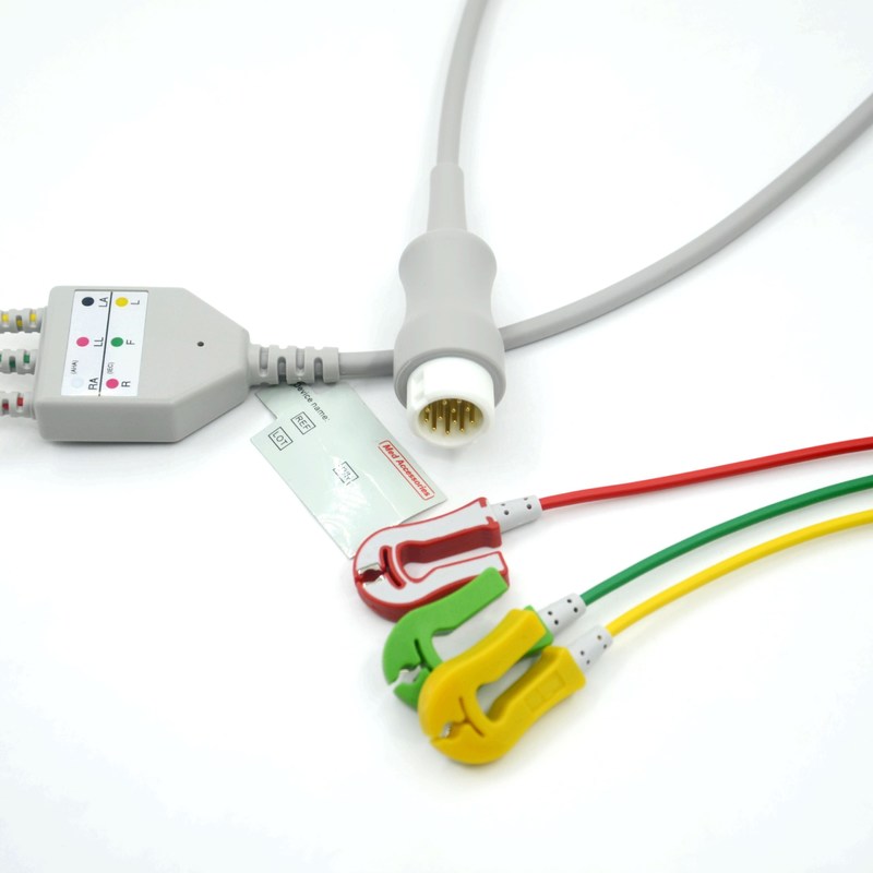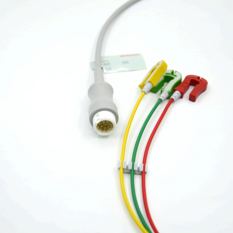 2. লিড কনফিগারেশনঃ ইসিজি ক্যাবলগুলি পর্যবেক্ষণ বা ডায়াগনস্টিক উদ্দেশ্যে প্রয়োজনীয় লিডের সংখ্যার উপর নির্ভর করে বিভিন্ন লিড কনফিগারেশনকে সামঞ্জস্য করার জন্য ডিজাইন করা হয়েছে।সাধারণ লিড কনফিগারেশনের মধ্যে রয়েছে 3-লিড, ৫-লেড, ১০-লেড, বা ১২-লেড ইসিজি তারের। প্রতিটি কনফিগারেশন হৃদয়ের বৈদ্যুতিক ক্রিয়াকলাপের একটি ভিন্ন দৃশ্য ক্যাপচার করার জন্য নির্দিষ্ট ইলেক্ট্রোড স্থাপনের সাথে মিলে যায়।